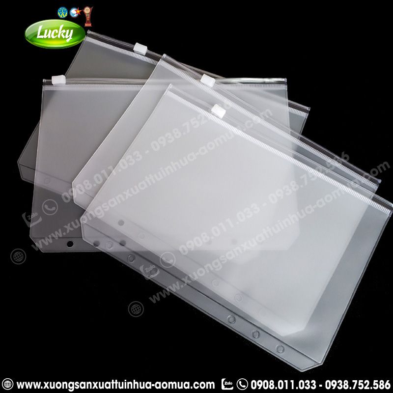 | TÊN SẢN PHẨM | BAO SỔ CÒNG TÚI ZIP 6 LỖ A5 KHÓA ZIPPER TRONG SUỐT |