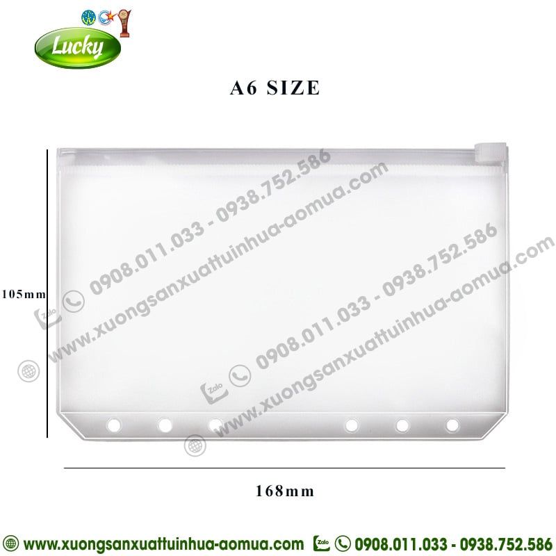 | TÊN SẢN PHẨM | BAO SỔ CÒNG TÚI ZIP A6 6 LỖ TRONG SUỐT (CÓ KHÓA KÉO) |